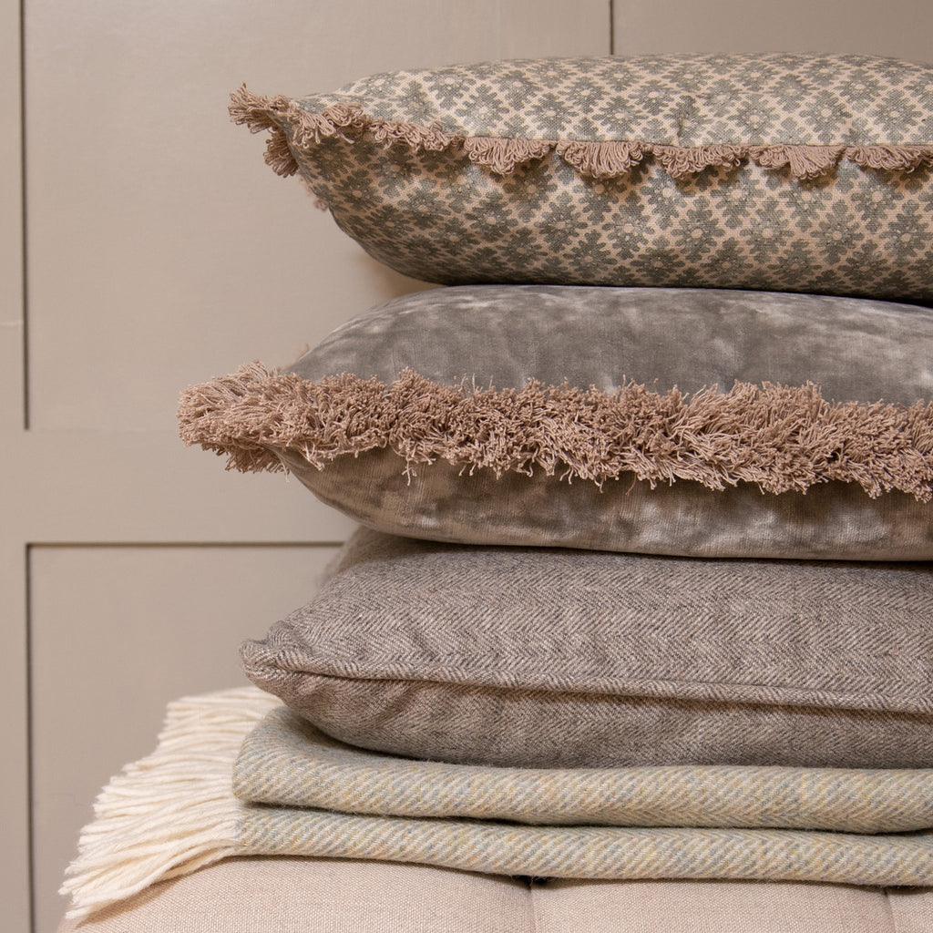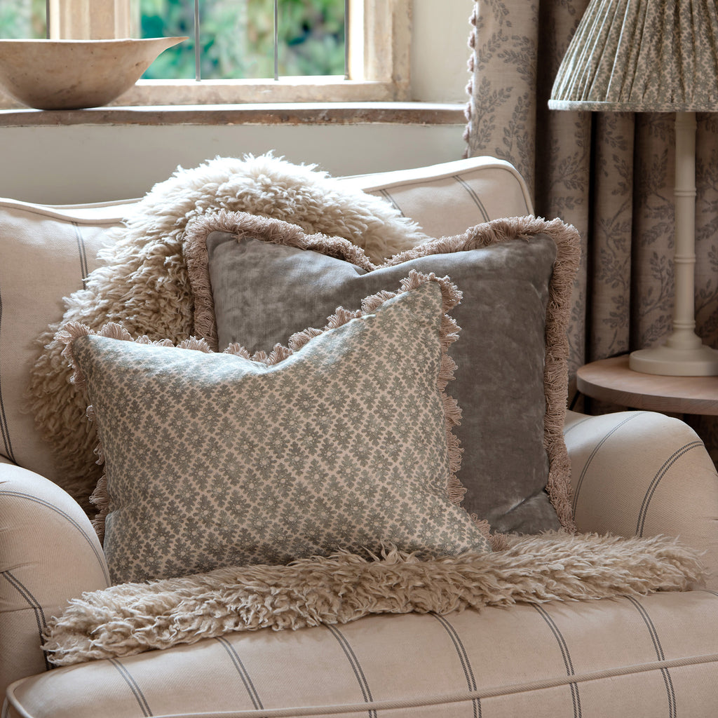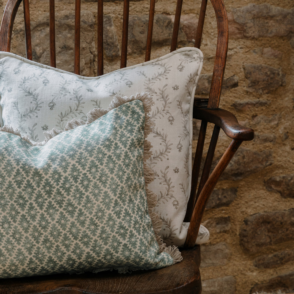 Our beautiful Ashfield cushions are designed and hand made in our Wiltshire studio from soft tumbled linen, featuring a pretty geometric pattern in a traditional block print design.