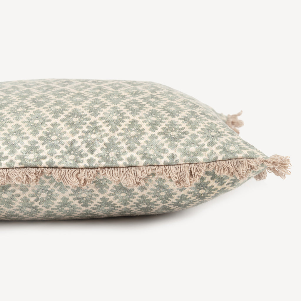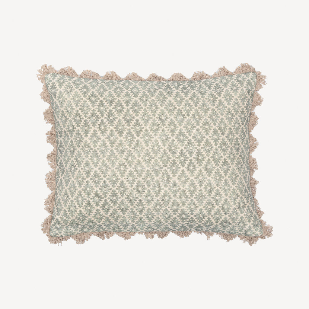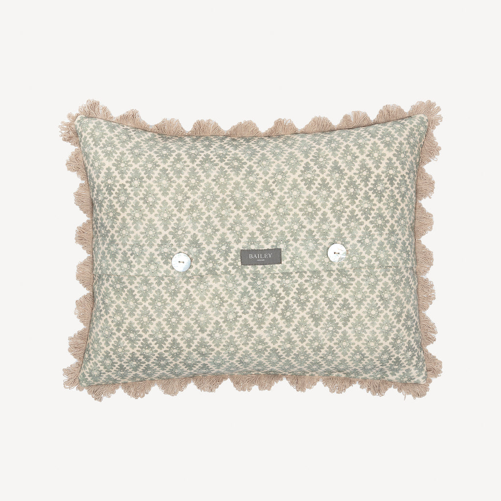 Our beautiful Ashfield cushions are designed and hand made in our Wiltshire studio from soft tumbled linen, featuring a pretty geometric pattern in a traditional block print design.