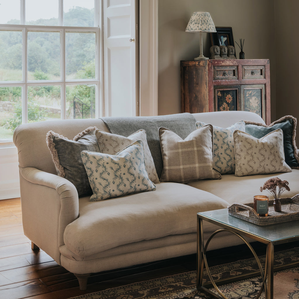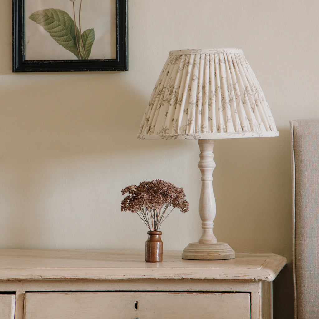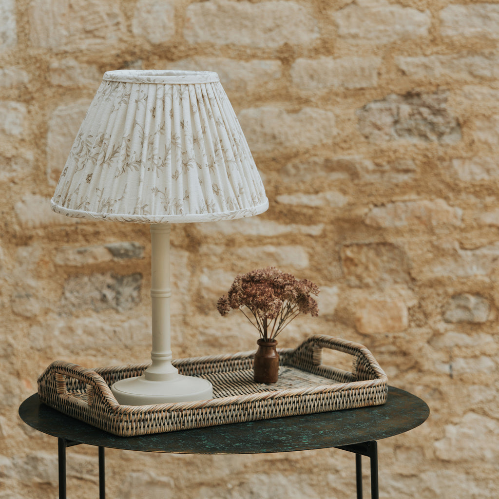 Our pretty Trellis Garden pleated lampshades are designed and handmade in our Wiltshire studio. Each shade is lined in superfine ivory cotton lawn with a delicate satin like finish which diffuses the light beautifully.