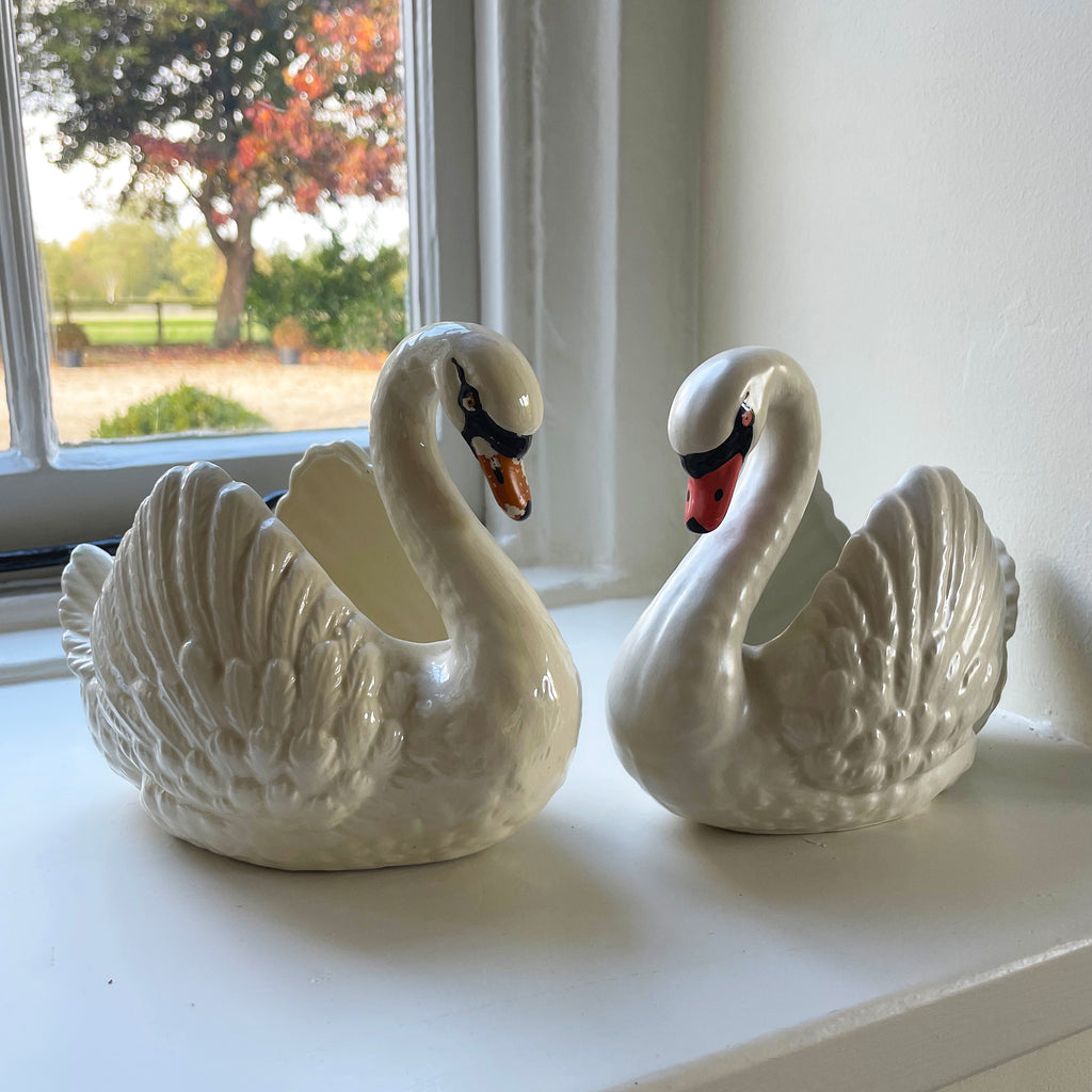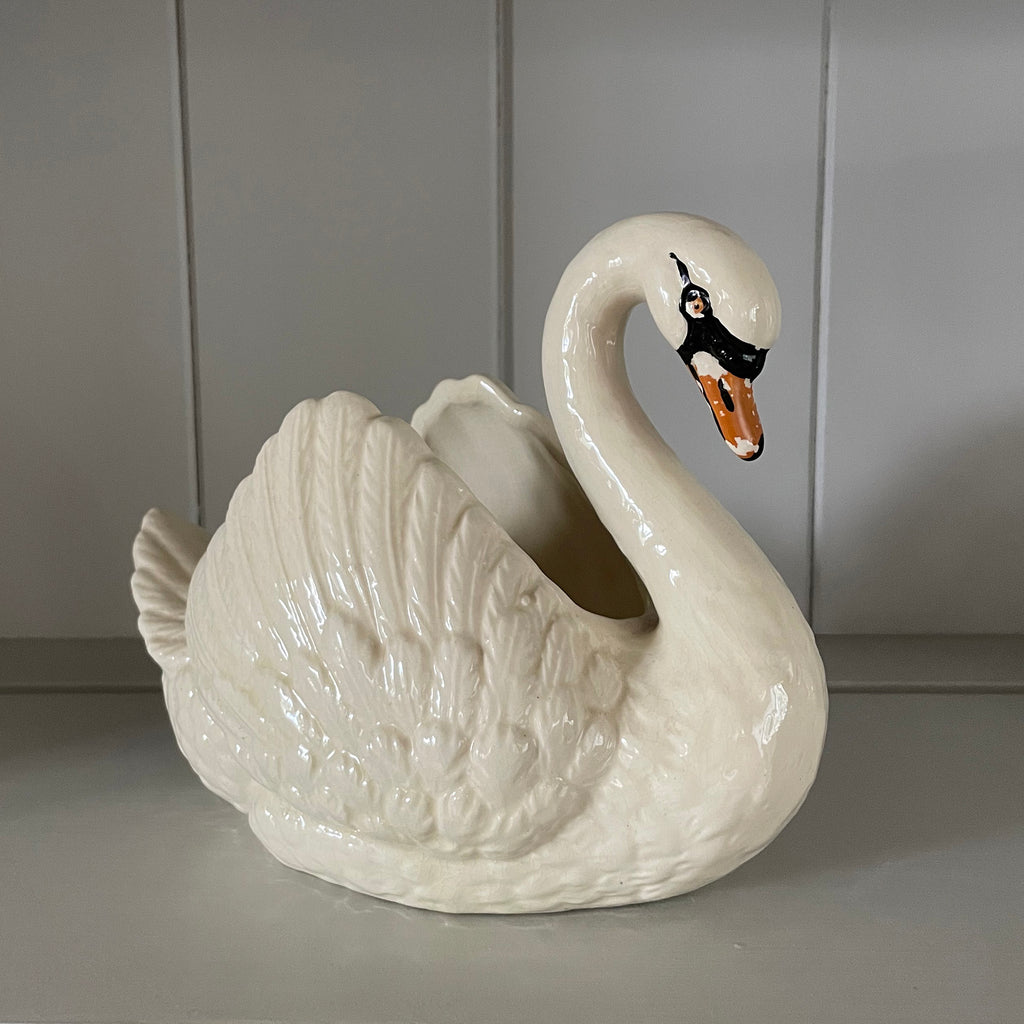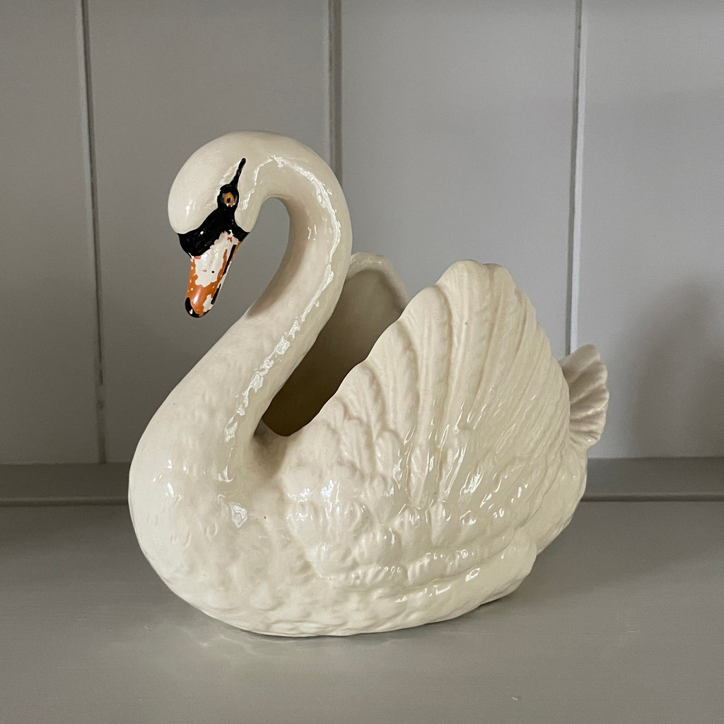 A beautiful Dartmouth Pottery of Devon swan that looks lovely as a decorative object in its own right or can also be used as a planter or vase.