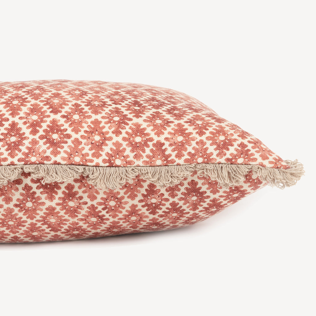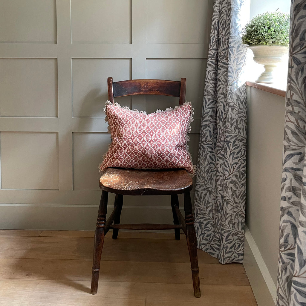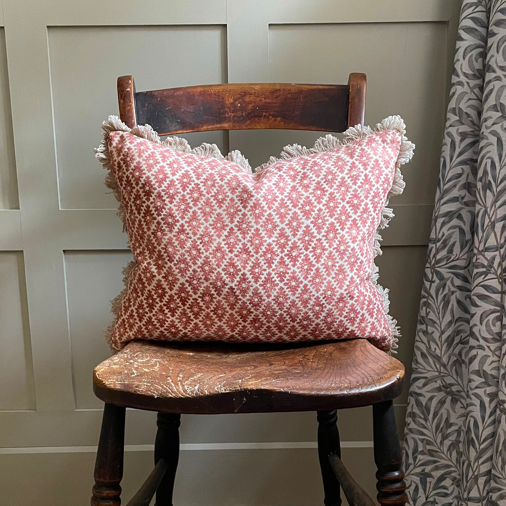 Our beautiful Ashfield cushions are designed and hand made in our Wiltshire studio from soft tumbled linen, featuring a pretty geometric pattern in a traditional block print design.