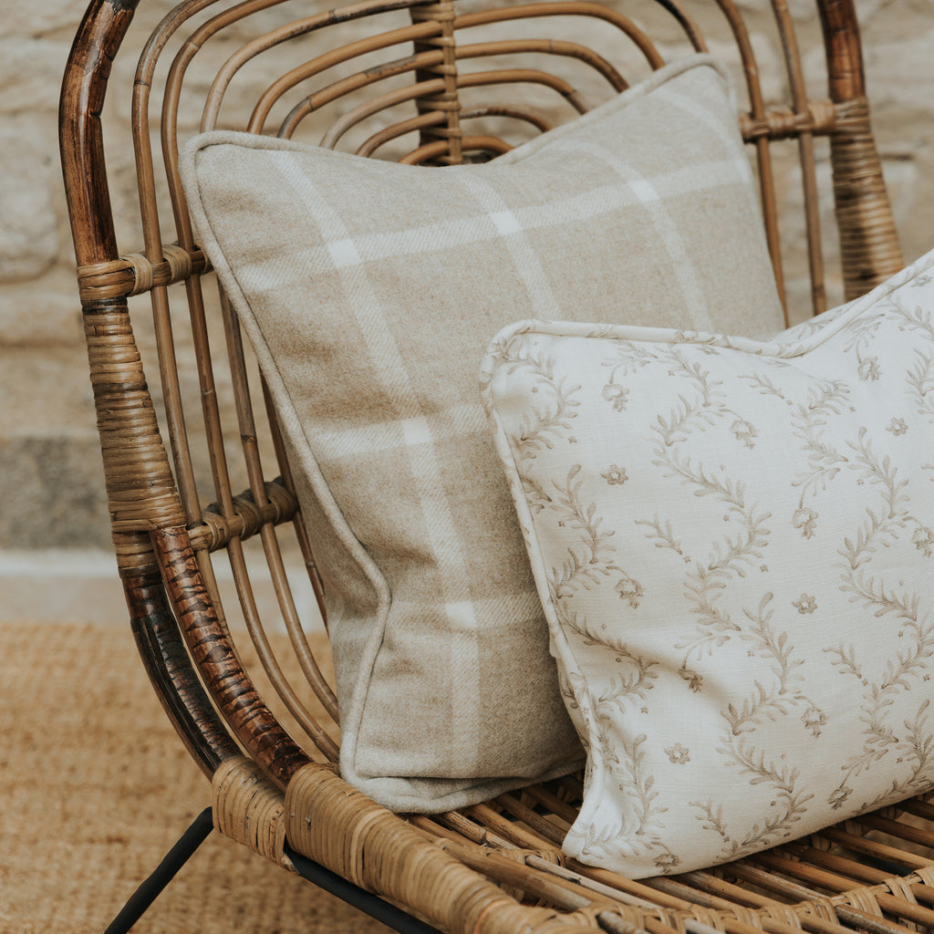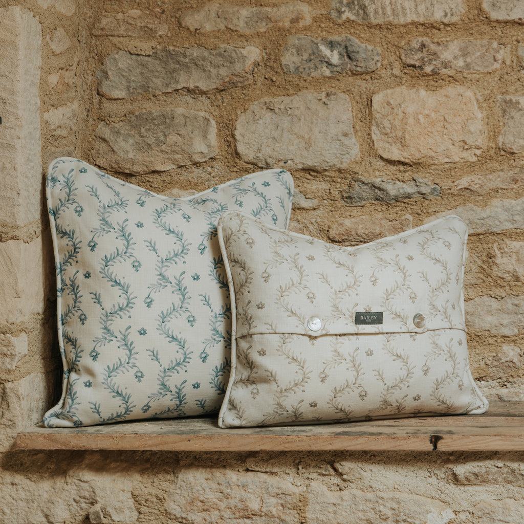 Our pretty Trellis Garden cushions are designed and hand made in our Wiltshire studio from 100% premium linen, featuring a delicate trailing vertical pattern reminiscent of traditional English gardens.