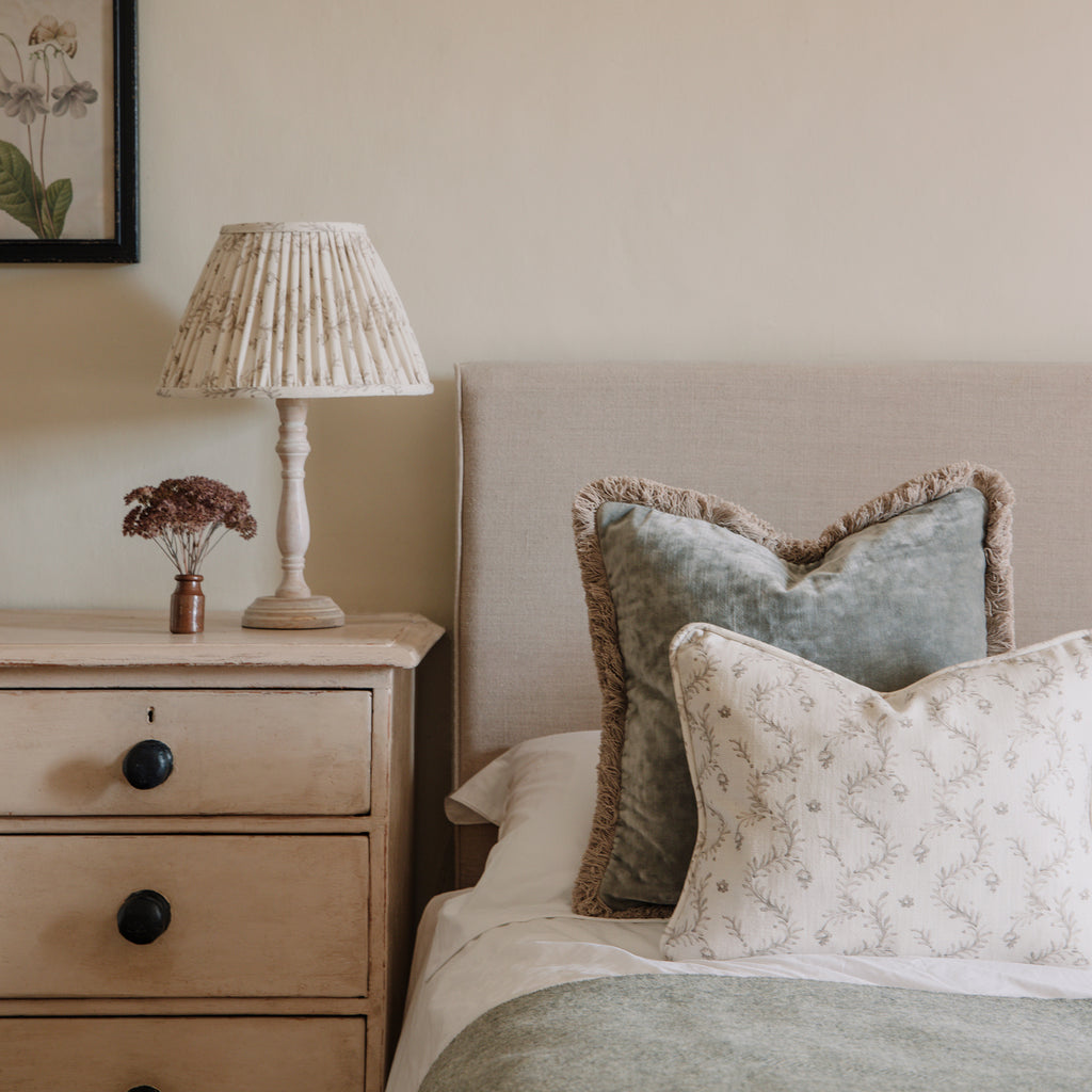 Our beautiful antique style cushions are designed and hand made in our Wiltshire studio from luxuriously soft velvet. Their delicate mottled finish gives the impression they are gently time worn and they make the perfect backdrop to layer with our patterned cushions.