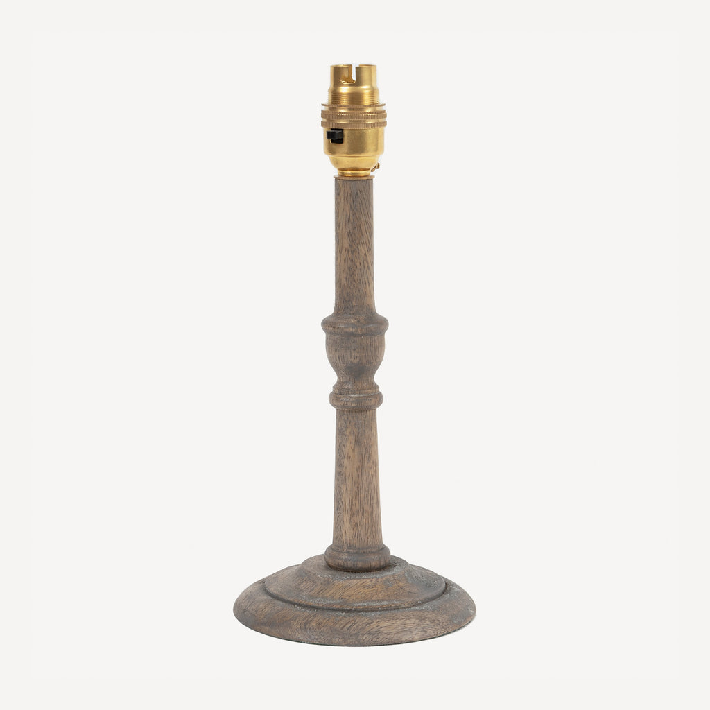 Our antiqued candlestick table lamps are hand-turned and crafted from sustainable mango wood sourced from India, a by-product of mango fruit. Each lamp is hand-finished in our studio with a hardwax oil that brings out the beautiful natural grain and texture of the wood. The classic dark wood finish with a hint of grey gives this timeless wooden lamp a touch of modern country house style.
